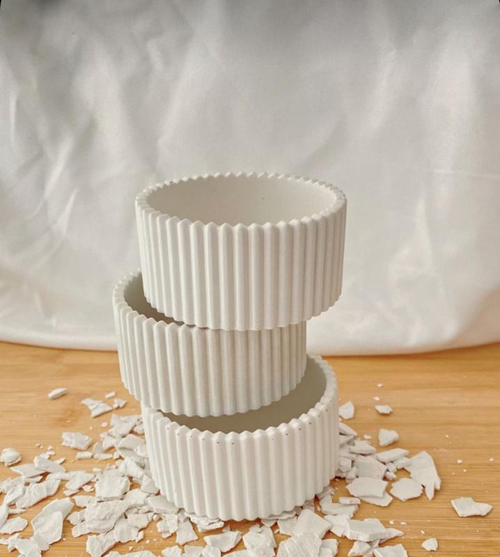 Кашпо из гипса для свечей\мелочей\украшений. размеры : высота 3.5 см , ширина 8 см примерный объем 175 мл цвета: белый цвет изделия может немного отличаться от фото
