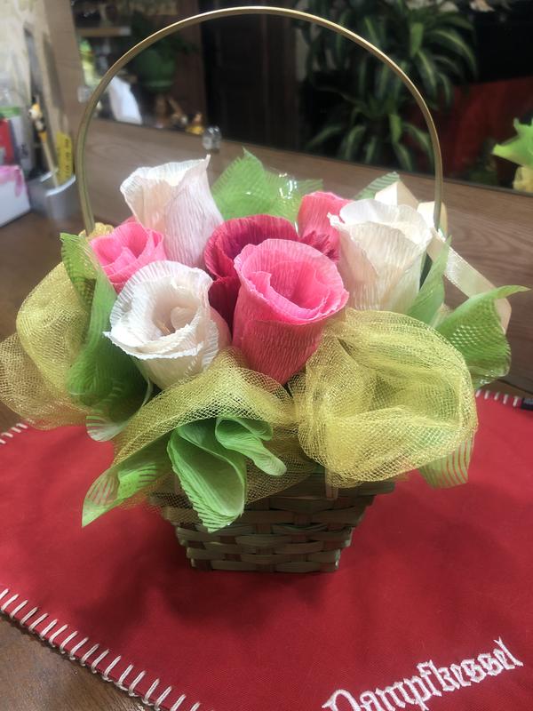 Симпатичная плетеная корзина с цветами для формирования конфетного букета на подарок. Замеры запить, ответьте в переписке.