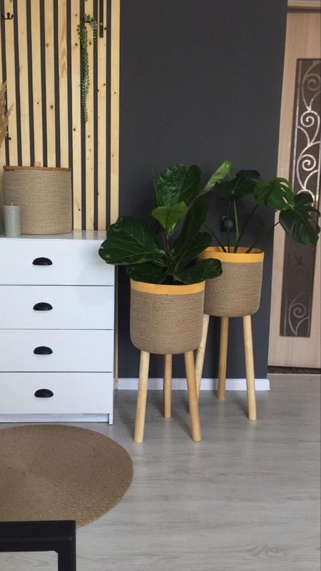 Кашпо для цветов Сочетание каната и 100% хлопкового шнура Отлично держит форма, подойдет к любому интерьеру Размер на первом фото 20×30