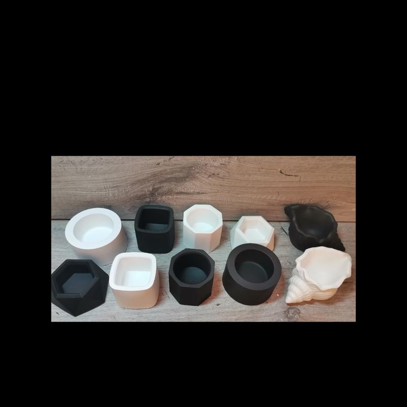 Мінімальне замовлення в магазині 100 грн!!! Матеріал: гіпс. Розмір : Квадрат ш5 в4.7см. Об'єм: 50 мл - 2шт Піраміда 6 грань ш6.5 см в3.7см. об'єм: 30 мл - 2 шт. Стаканчик 5.5*4.5 див. об'єм :50 мл - 2 шт. Мушля 11*4*6 див. 55 мл 2 шт. Циліндр ш 7см*в 4см. Об'єм 50 мл - 2 шт. Покриття: фарба. Ціна за набір 10 шт.