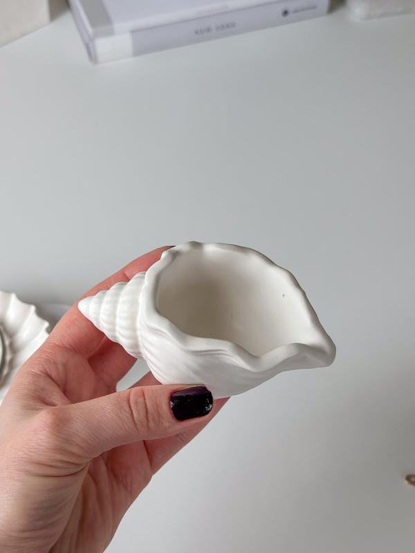 Кашпо ракушка для украшений , свечей , мелочей Материал высокопрочный гипс Размеры : длинна 9 см, ширина 4 см Цвета : белый