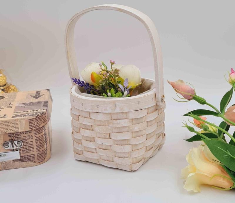 Корзина-Кашпо Плетеная, с подкладкой, КРУГЛАЯ с подвижной ручкой, 14*10см + ручка 11см Код товара 283148