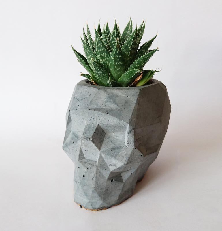 Стильный череп из бетона Подойдет для современного интерьера и будет хорошим подарком. Имеет оригинальный вид. Может быть как кашпо для сукулента,подсвечник, пепельница или держатель для канцелярии. Размеры: 9х7х6 (см) В наличии серого цвета. На заказ можно любого цвета и оттенка изготовить(+30% к стоимости), срок исполнения 7-10 дней. Смотрите другие наши объявления. Всем мир! Дополнительные характеристики: Материал : Бетон