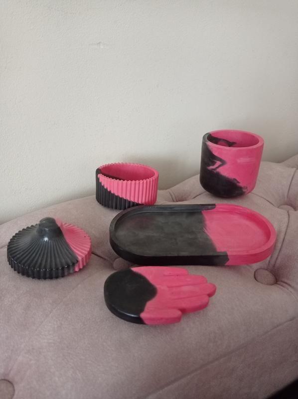 Красивый набор из гипсового кашпо покрыто акриловым лаком