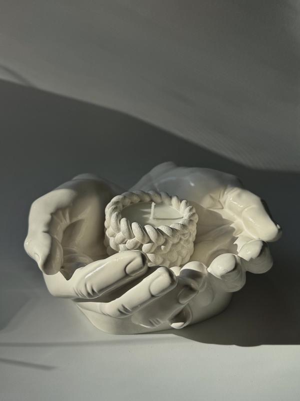 Кашпо "Долоні Давида" (Hand of David) – це оригінальний і стильний елемент декору, який імітує долоні Давида, витонченого скульптурного шедевру Мікеланджело. Таке кашпо часто використовують для прикрашання інтер'єру або екстер'єру, він має форму рук, що ніби тримають горщик для рослин. Цей елемент декору символізує силу і витривалість. 🌟Високоміцний гіпс, лак Розміри 15.7х15х7см Соєва свічка в кашпо 30 мл