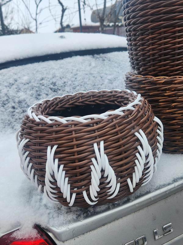 Стильное кашпо из искусственного ротанга для дома, балкона, террасы или улицы. Преимущества: Ручная работа • Влагостойкое - не боится дождя и полива • Не выгорает на солнце - сохраняет цвет годами • Легкое и прочное удобное в использовании Простое в уходе - легко очищается Долговечное - служит много лет В наличии 10 вариантов: 5л бело-коричневый с подставкой и узором - 600грн 5л бело-коричневый - 450 грн 10л коричнево-серый - 550 грн 10л коричневый под дерево (2 вида) - по 500 грн 12л коричневый глянец - 550 грн 5л серое под дерево, подвесное - 600 грн цены за другие кашпо уточняйте. Материал: искусственный ротанг Использование: дом/балкон/улица Возможно исполнение под заказ различные кашпо, которое только придет на ум, можно дровницу, пухляв, с узорами, 2-ух цветные, и так далее. Возможен торг За дополнительными фото звоните или пишите