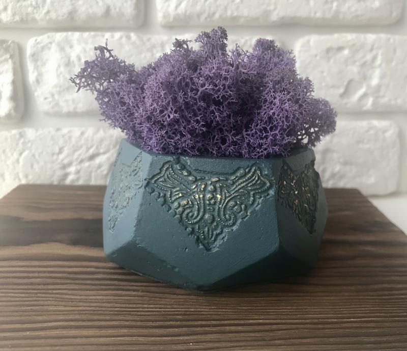 Кашпо сделано из цемента с фактурным кружевом и декорировано золотистым цветом ( друза ) Цена за 1 шт