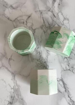 Гипсовое кашпо белое с бирюзовым