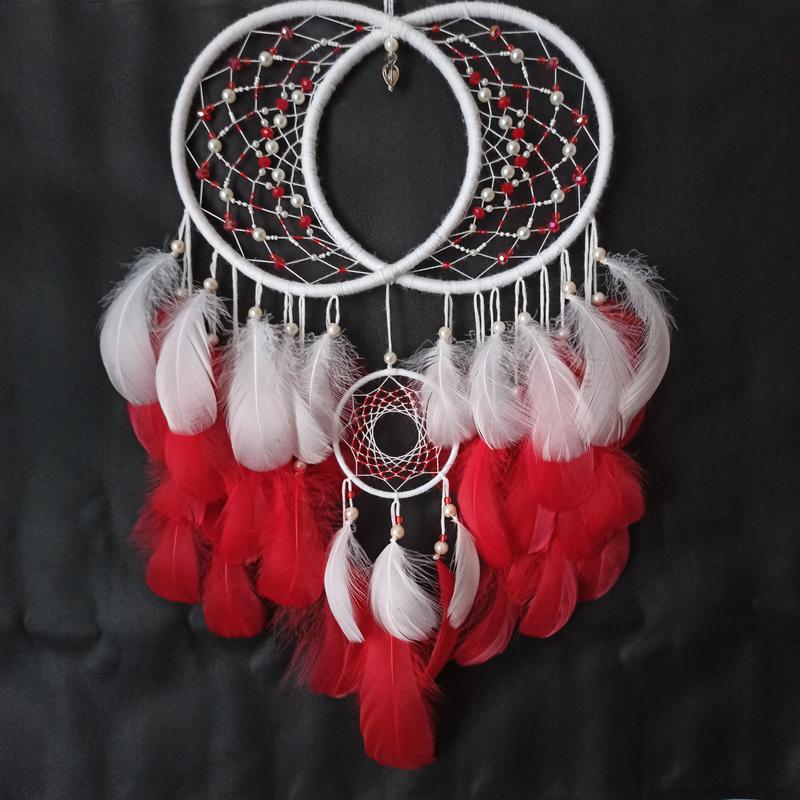 Ловець снів для пари. "Поєднання душ" Ширина виробу 25,5 см. Діаметр кільця 7,5 см. Висота 45 см. Основа пластик, нитки: бавовна, акрил, віскоза; бісер, намистини: акрил, пластик, металева підвіска з перлиною, пір'я гуски. Білий колір означає відкритість, легкість, непорочність, простоту, чистоту, спияє виявленню прихованого. Білий колір викликає позитивні асоціації так як являє малу кількість кольору. Його основне значення - рівність, так як об′єднує в собі всі кольори, вони в ньому рівні. Він завжди надихає, допомагає, вселяє певну віру (дає свободу). Червоний – дуже сильний колір. Колір земного життя. Символізує весну і молодість, розвиток людини. Також це сила, пристрасть, впевненість. Відправка Новою або Укрпоштою після оплати на карту або з безпечною оплатою на сайті.
