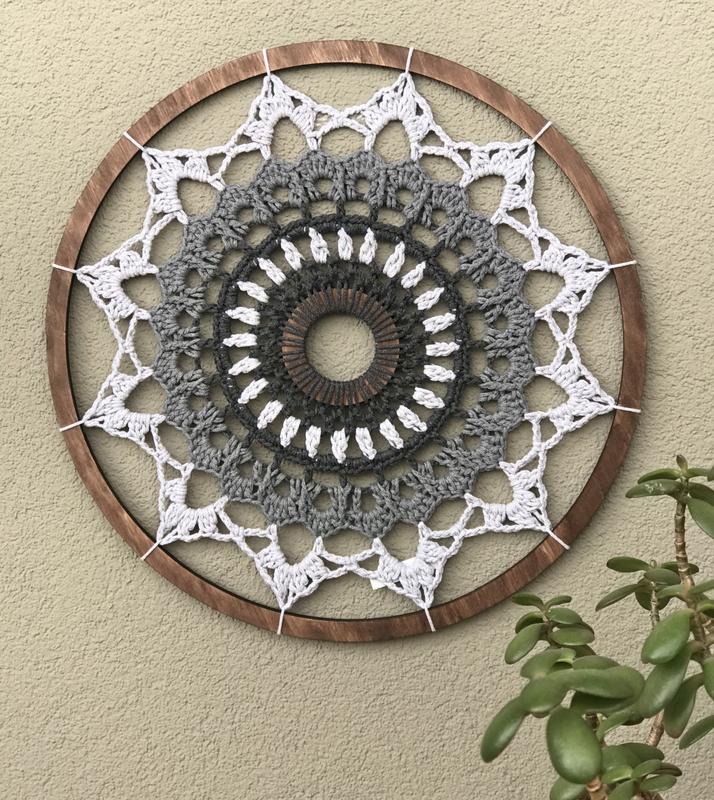 Чудесное и оригинальное настенное панно! Панно декоративное из хлопкового шнура, размер 41 см. Кольца - фанера. Можно заказать в других цветах.