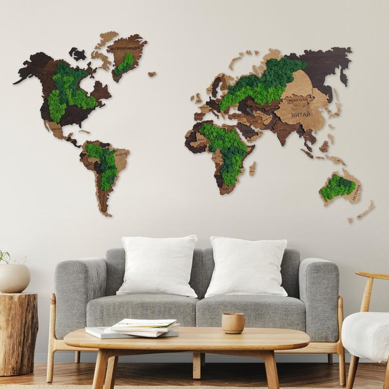 Карта мира многослойная со стабилизированным мхом. 1,5х0,9 м