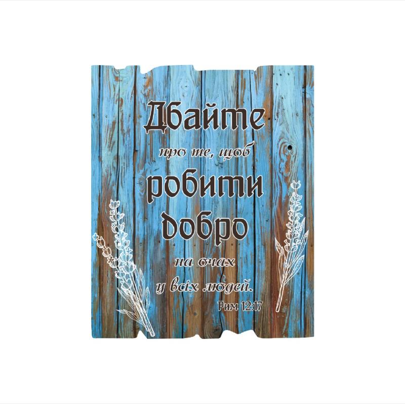 Деревянная табличка 24х30 см "дбайте про те добро"