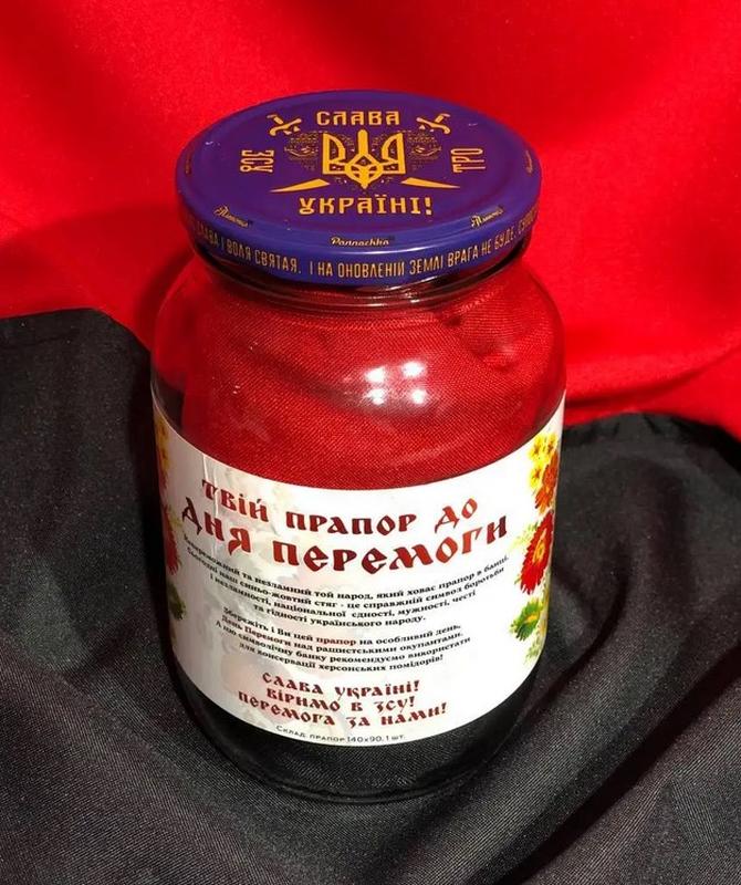 Твой флаг УПА к Дню Победы! Непобедимый и несокрушимый тот народ, который прячет флаг в банке. Сохраните и Вы этот флаг на особый день, День победы над рашистскими окупателями. А эту символическую банку рекомендуем использовать для консервации херсонских помидоров! (размер 140*90см.) Слава Украине! Верим в ЗСУ! Победа за нами!
