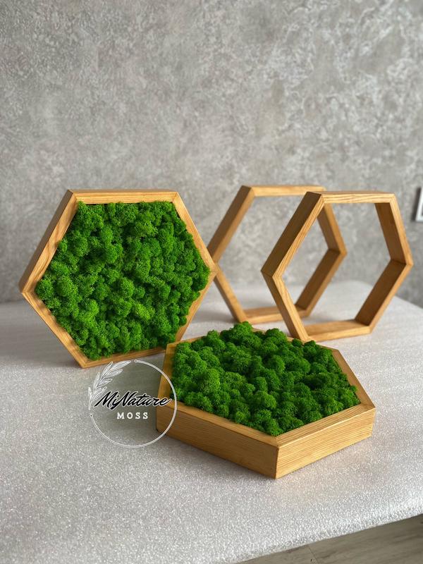 MiNature Moss - це студія вертикального озеленення стабілізованим мохом та рослинами. Соти зі стабілізованим мохом Преміум затребуваний товар, який зробить акцент у вашому інтер'єрі, додасть свіжості, унікальності. *розмір можливо замовити від 10 см до 80 см Матеріал: сосна та стабілізований мох Преміум Розмір: по діагоналі 30 см >Сота годинник- 790 грн >Сота наповнена мохом - 1480 грн/шт >Сота полиця(пуста)- 350грн/шт Стабілізований мох-це справжня знахідка, адже за ним не потрібно доглядати, від слова зовсім. Переваги моху: -зберігає насичений колір та природну м'якість до 10ти років -гіпоалергенний; -має антистатичну поверхню (за рахунок гліцеринового розчину в якому він вимочується, пил на ньому не накопичується) -його не потрібно обприскувати, поливати; -Не вимагає освітлення; -в ньому не заводяться комахи, різні шкідники та пліснява Головні поради для продовження терміну експлуатації моху: - не мох під пряме сонячне проміння якщо мох щодня світитиме сонце, він швидко вицвіте - У приміщенні не повинно бути холодно чи спекотно якщо температура нижче +4 або вище +35 градусів, мох швидко висохне. - не розміщуйте мох біля нагрівальних приладів (кондиціонерів, батарей, навіть теплої підлоги) відстань від приладів має бути від 1 м-коду. - не мочіть і не обприскуйте водою якщо мох намочити з поверхні змиється розчин, таким чином він буде сохнути і втрачати колір - Підтримуйте вологість повітря 40-70% вологості якщо вологості у приміщенні недостатньо, її можна підвищити зволожувачем повітря - Забирайте пил з поверхні раз на 4-6 місяців делікатним рухом щіткою для пилу або холодним струменем повітря фена У нас ви отримуєте: _Кращу ринкову ціну _Якісний продукт _Детальну консультацію _Надійні упаковки _Стильний декор, який нікого не залишить поза увагою
