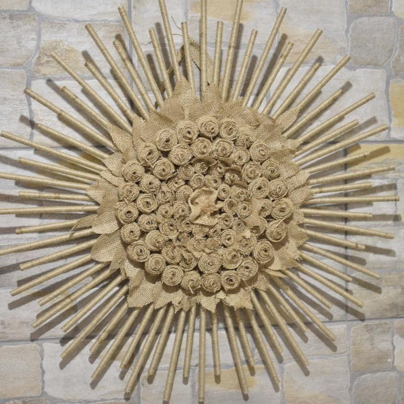 НАСТЕННЫЙ ДЕКОР ИЗ МЕШКОВИНЫ В СТИЛЕ РУСТИК Симпатичный элемент декора стен в стиле рустик. Сочетание лучей и роз двух размеров, обрамленных листьями - делает изделие оригинальным и изысканным. ✂️ Материал - мешковина и джутовая нитка Диаметр - 68см. Изделие изготавливается под заказ Максимальный срок изготовления - 5 дней. 🎁 Отличный подарок для мамы, дочери, подруги, коллеги! Товар под заказ