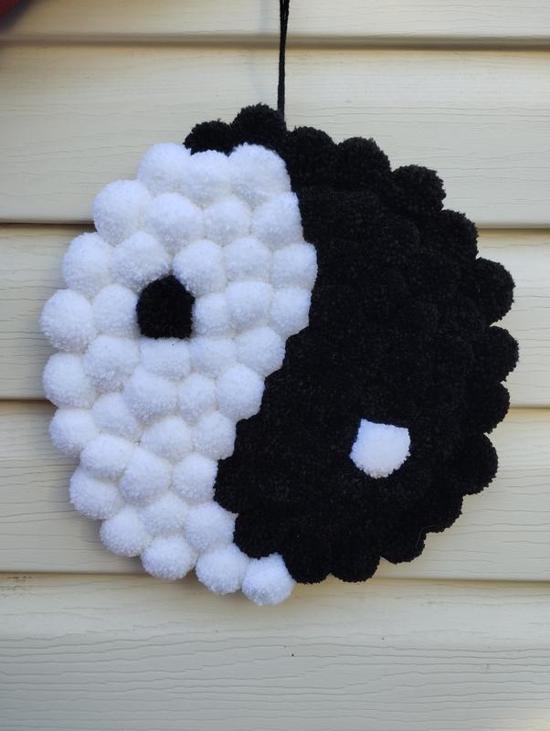 Инь янь из помпонов настенный декор