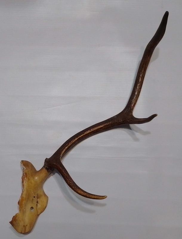 Рог оленя с частью черепа. Пригоден как для антуража, декора, так и для изготовления рукояток для ножей, пробиков - достаточно толстый. Длина по линии рога - 59см.