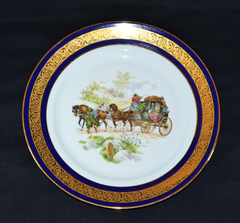 Тарелка Limoges Label De Qualite Rehausse Main France из 22-каратного золота , кобальт, ручная роспись, фарфор. Диаметр 25,5 см.