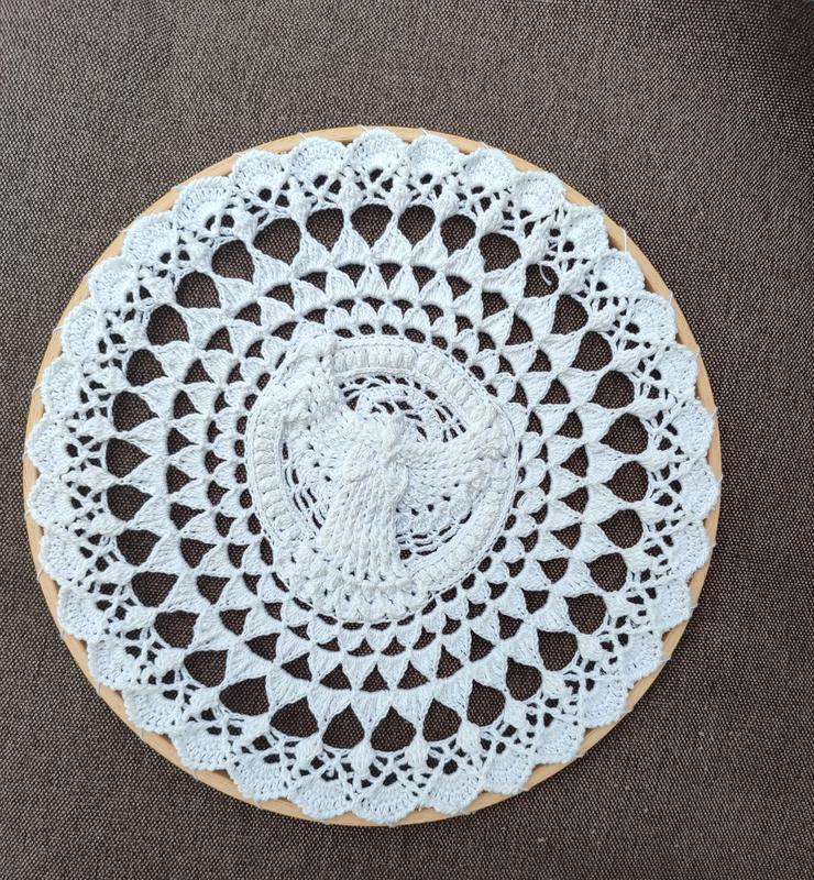 Пано ручной работы, диаметр 26 см. Пано выполнено в технике вязки, обод деревянный
