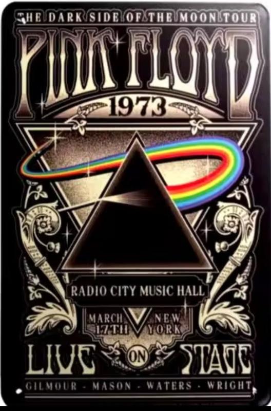 Для истинных ценителей легендарной рок-музыки! Эта металлическая табличка — дань уважения великой группе Pink Floyd и их культовому альбому "The Dark Side of the Moon". На табличке изображен стилизованный постер с классической призмой, преломляющей луч света в радугу, а также надписи, отсылающие к концертному туру 1973 года. Это идеальный подарок для меломанов, коллекционеров и всех, кто хочет добавить немного рок-н-ролла в свой интерьер. Табличка отлично впишется в: гостиную музыкальную студию бар или мужскую берлогу Табличка выполнена из прочного металла с винтажным эффектом и имитацией потёртостей, что придает ей вид настоящего раритета. Размер: 14х20 см. Материал: металл.