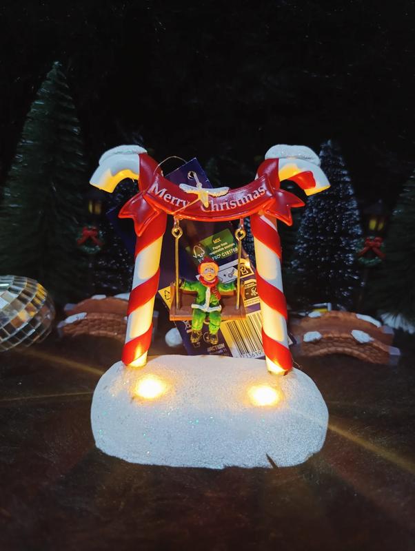 Очень положительный декор с подсветкой на праздники. Эльфик на качелях, катается самостоятельно благодаря встроенным магнитам. Работает от батареек в комптект не входят