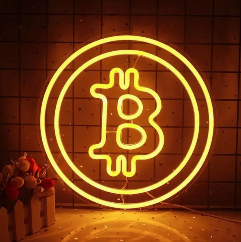 Неоновая вывеска в форме биткоина usb