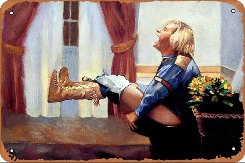 Ультраюморная металлическая табличка (14х20 см) с пародийным изображением Гарри Данна (Джефф Дэниэлс) из культовой комедии "Тупой и еще тупее" (Dumb and Dumber). Забавная и смелая отсылка к знаменитой сцене в ванной! Сюжет: Картина в стиле классической живописи, изображающая Гарри в ковбойских сапогах в весьма комичной ситуации. Материал: Прочная жесть с глянцевым покрытием. Высококачественная печать, устойчивая к выцветанию. Эффект потертых краев придает табличке винтажный вид. Применение: Идеально подойдет для туалета, ванной комнаты, "мужской берлоги" или бара, где ценится комедийный юмор. Крепление: Табличка имеет отверстия по углам для легкого монтажа. Гарантированный смех и внимание гостей! Отличный подарок для фанатов культовой комедии.