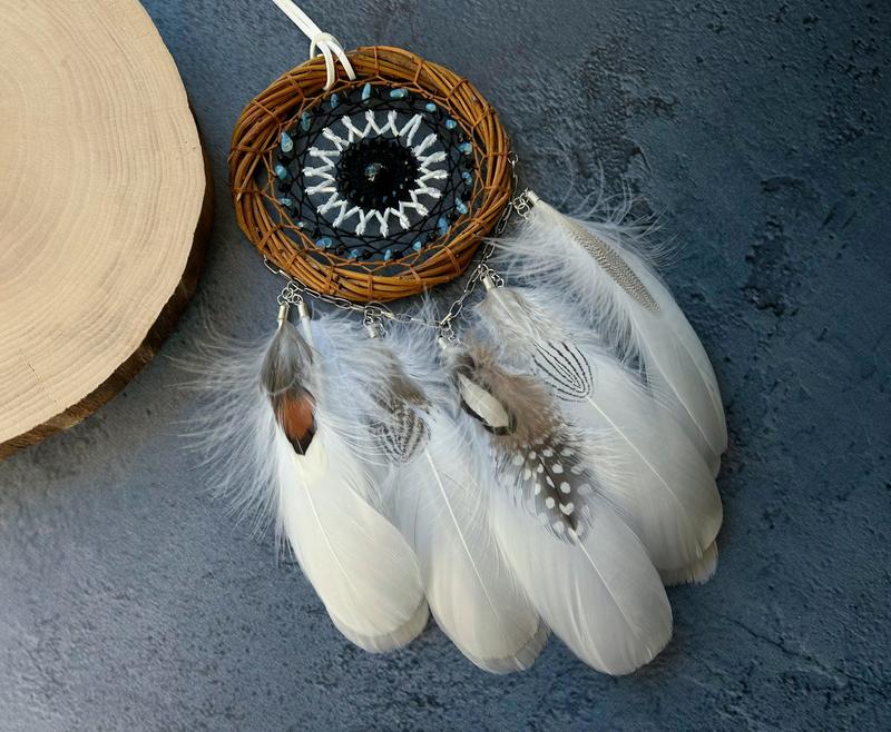 Ловець снів допомагає людям позбутися поганих думок, заспокоїтися і поринути у приємний сон. Діаметр основи 10 см, довжина 26 см Замовляючи ловець снів у подарунок, Вам не потрібно думати, як його упаковувати чи перевозити. Я все вже продумала (при такій упаковці ловець залишиться цілим і можна сміливо дарувати його)