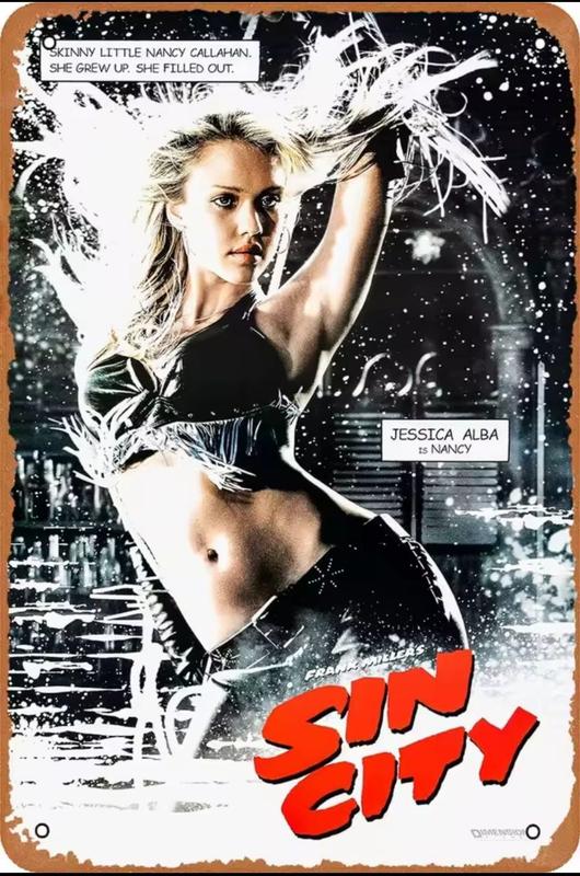 Металлическая винтажная табличка "город грехов" (sin city) джессика альба 14х20 см