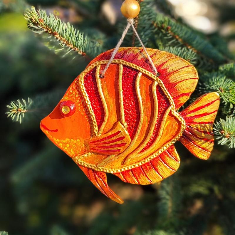 ✨Керамічна рибка Дискус — яскравий акцент у вашому інтер’єрі! Її вогняні кольори — поєднання червоного, помаранчевого та золотавих відтінків — ніби оживають на світлі, створюючи відчуття руху й тепла. Делікатні мазки золота додають розкоші й сяйва, роблячи кожну рибку унікальною. 🐠 Ця декоративна дискус стане чудовим талісманом для дому, символом гармонії, натхнення та творчої енергії.