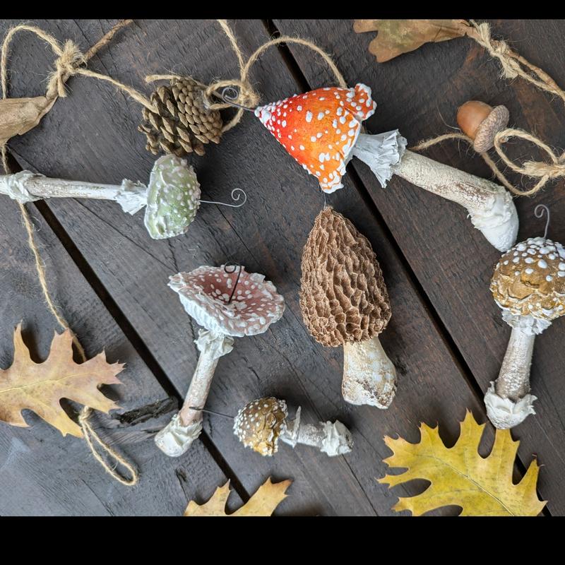 Гирлянда из грибов ручной работы принесет улыбку и дыхание леса. Размер 10-17 см, материалы: полистирол, папьемаше, паперклей. Вкрыты экологичными акриловыми красками и лаком. Могут служить как домашним декором, так и елочными украшениями.