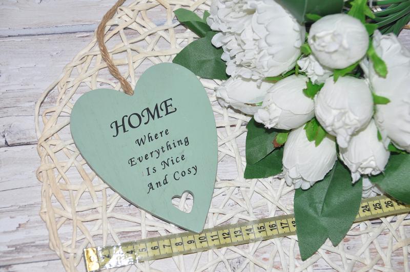 Фирменная табличка декор деревянное сердце с надписью - ДОМ, где все красиво и уютно Это декоративная деревянная табличка в виде сердца мятного цвета с надписью "HOME Where Everything Is Nice And Cosy" - ДОМ, где все красиво и уютно и веревкой для подвешивания. Просто и со вкусом. Новая, Англия. Использовались в качестве декора для фото. Пересылаю укр и новой по почте самовывиз в Киеве Обмен или возврат не предусмотрен