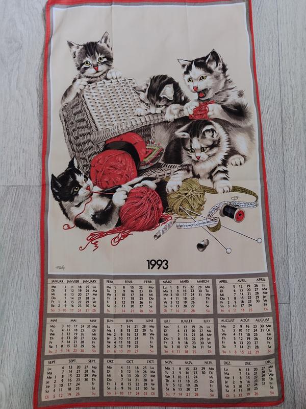Винтажный полотняный календарь с котиками 1993рик идеальное состояние.