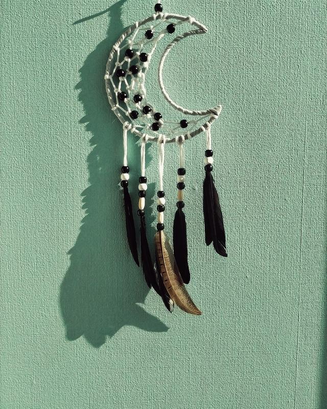 Цей ловець заплутуватиме погані сни і пропускатиме лише приємні сновидіння. Внутрішній діаметр місяця 14см Довжина 40см
