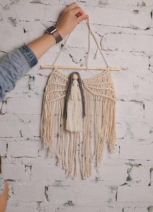 Панно ручної роботи в вигляді янгола-охоронця Доповни свій інтер’єр красивим ніжним панно Дане рано буде слугувати не тільки як прикраса, а ще й оберігати Виконано з еко матеріалів: бавовняного плетеного шнура