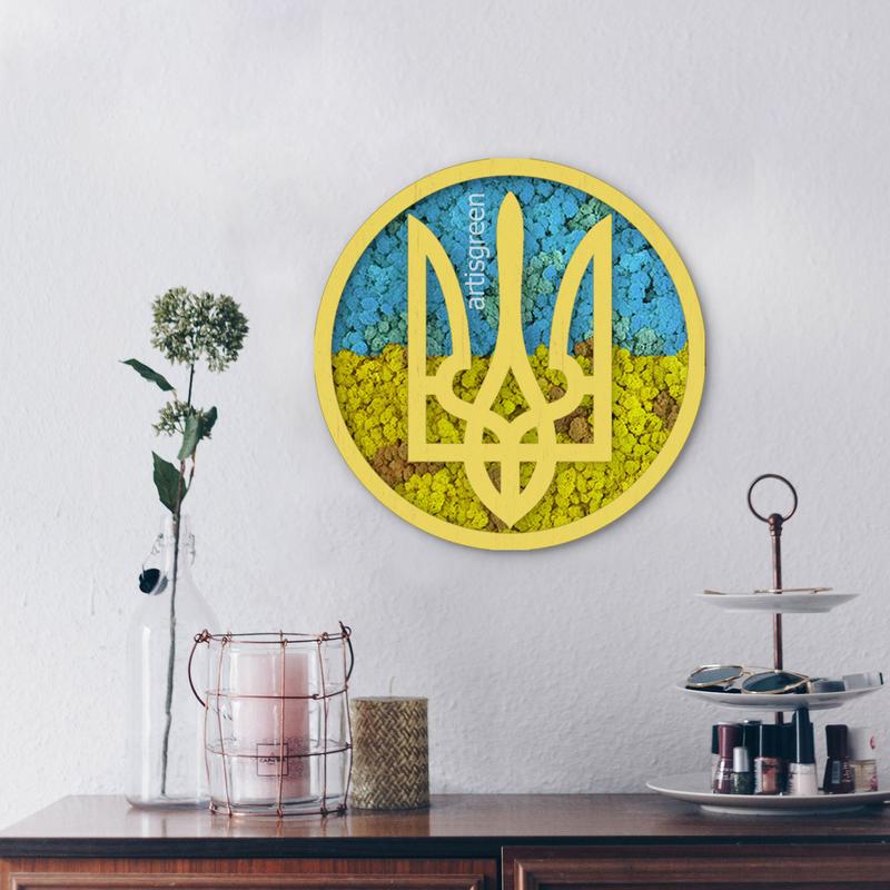 Панно для интерьерного декора из дерева и мха «тризуб», p31