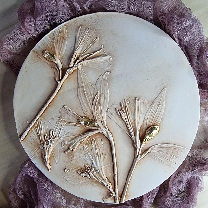 Ботанический барельеф - Альстромерия. Гипсовое панно 21 см. Есть петля.