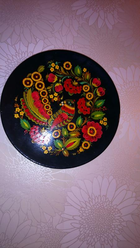 В отличном состоянии, без дефектов. Птица и цветы на черном фоне.