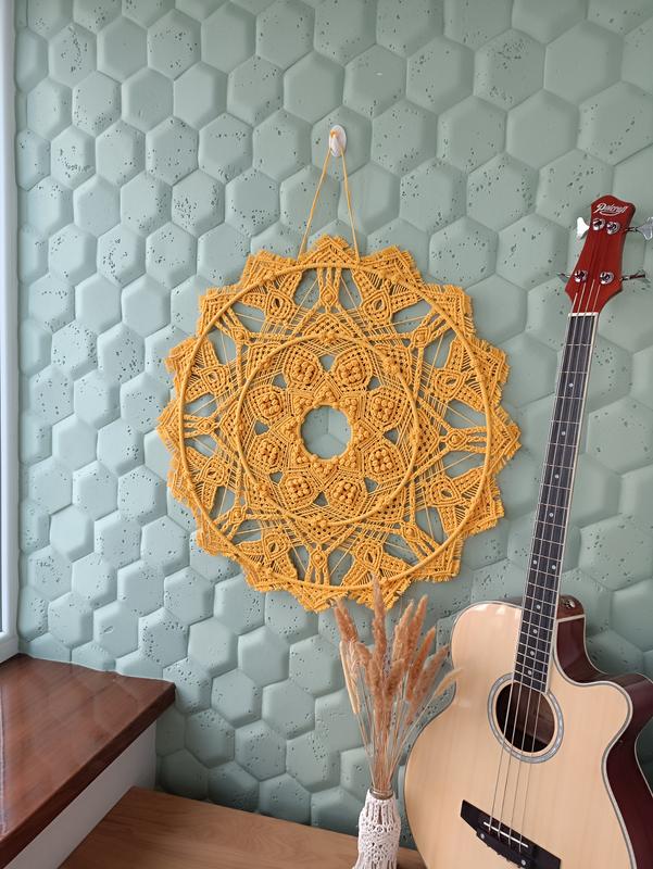 Желтограчья мандала в технике макраме, диаметром 70см. Нежное кружевное плетение из хлопковых нитей, авторский дизайн. Идеальный баланс насыщенного плетения и открытого пространства в изделии. Удачня передать цвет удалось на последнем фото)