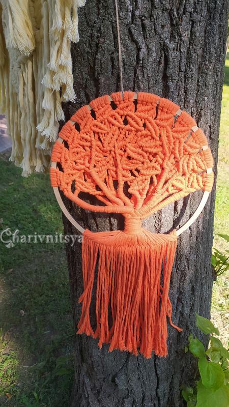 Дерево жизни Подарок - оберегает. Выполнен в технике макраме из хлопкового шпата. Цвет тыквенный.