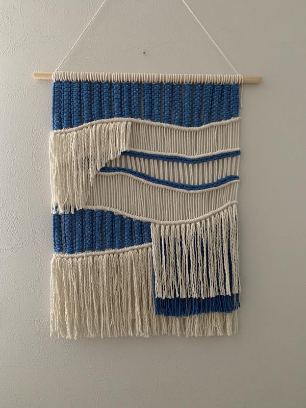 Панно макраме гобелен с яркими цветными деталями, сочетание плетеных элементов и бахромы. Длина основания 60 см, панно 55*70 см. Цвет может быть изменен по вашему желанию. Возможно исполнение панно в других размерах.