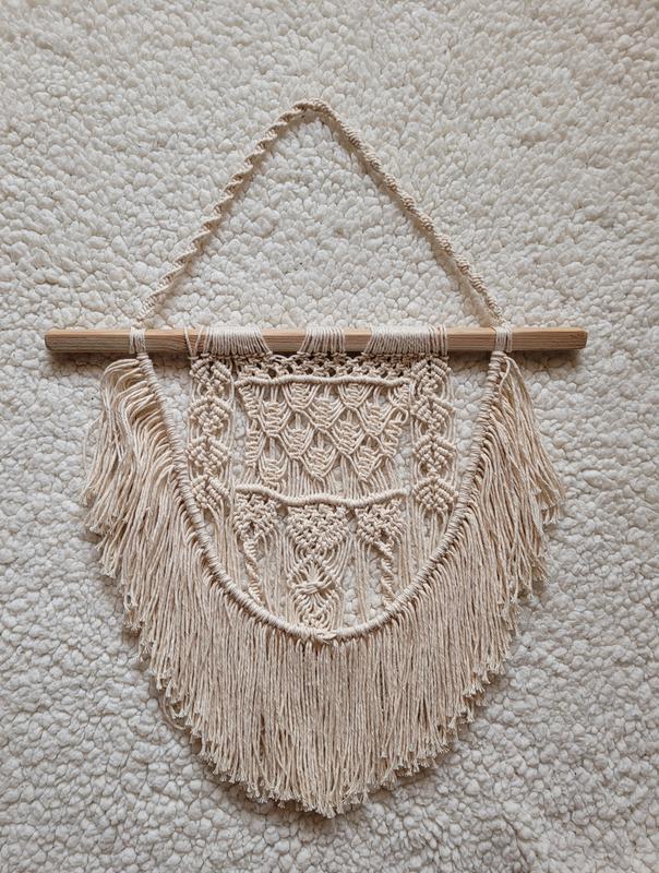 Оригинальное макраме средних размеров. Использованы натуральные материалы. Цвет – молочный. Доставка: 1). Оплата на карту, затем отправка. 2). Отправка удобной для Вас службой доставки: Новая Почта, Укрпочта. → упаковка в картонную коробку – бесплатно.