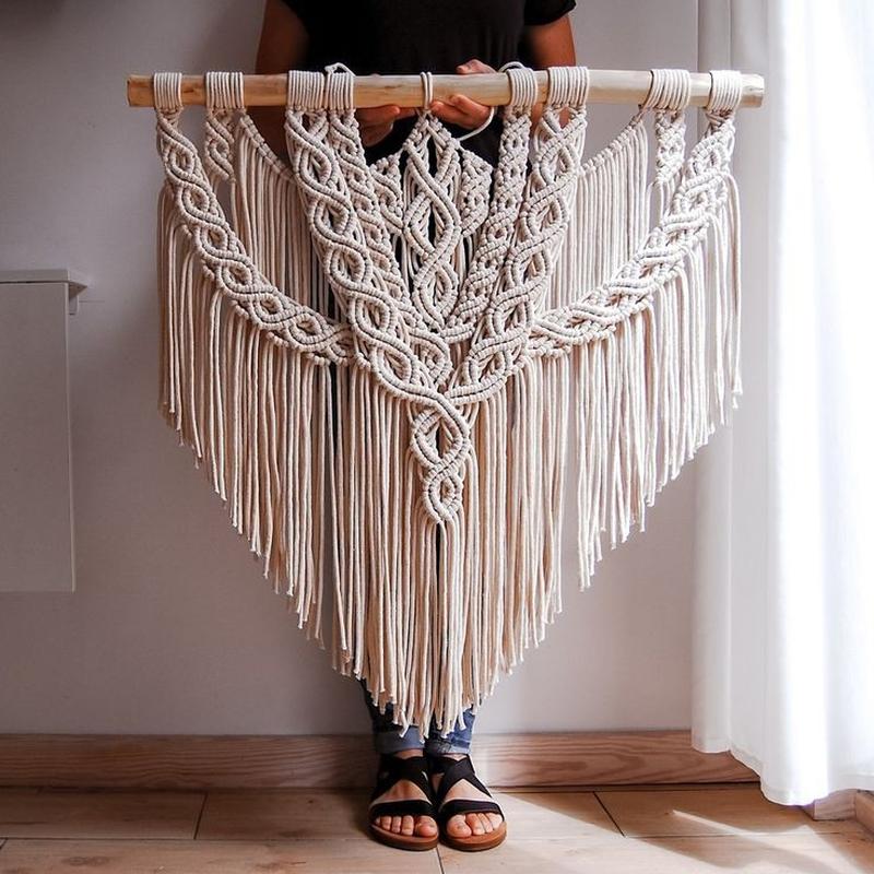 Панно которое станет украшением Вашего дома. Декор который любят фотостудии и тематические кафе за фотогеничность и оригинальность. Макраме неприхотливо в уходе, экологично и абсолютно безопасно для среды ______________________________________________ 🍀80×100 см 🍀 материалы: хлопковый вязаный шнур, дерево 🍀цвет: айвори 🌾 паннотрую по заказу по предоплате 🌾срок выполнения 2-7 дней 🌾большая палитра цветов 🌾возможно подобрать под панно абажур, кашпо подвесное,зеркало, салфетки и др
