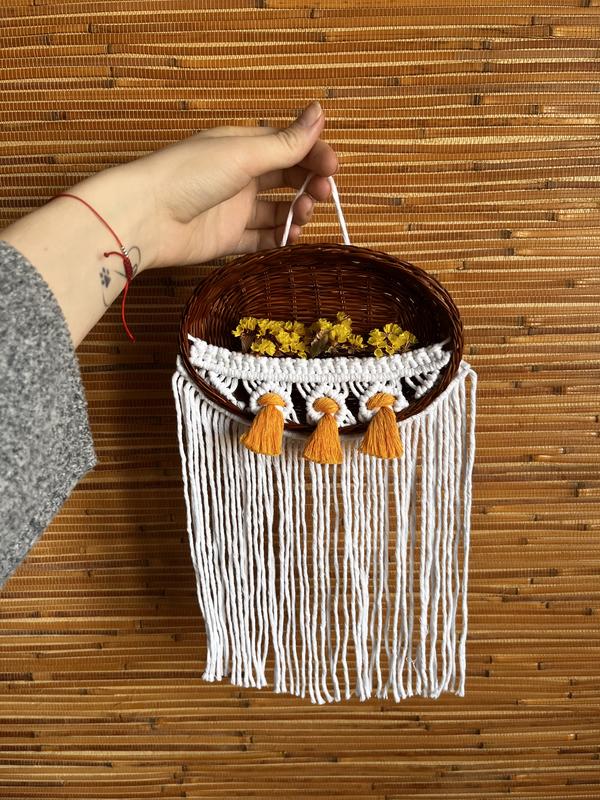 Макраме панно ручной работы. Выполнена из хлопкового шпагата. В корзине сухо цвета.