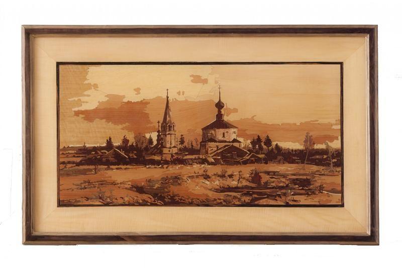 Работа в технике маркетри, размер с рамкой - 106х65 см. При создании работы использовался шпон череджейра, венге, лимба, американский орех, кото, махагон, клен сикамора, ольха, габон, падук. Рамка – тонированная сосна+ патина красное золото. Работа покрыта льняным маслом и шеллаком. Рамка снабжена подвесами. Возможно изготовление на заказ в желаемых размерах. Работа на заказ может быть без рамки. Маркетри - это художественный набор из различных по цвету и текстуре тонких деревянных пластинок (шпона). Кусочки дерева, состыковываясь по краям между собой, образую целостную картинку, которая в дальнейшем наклеивается на основу. Роль красок в маркетри выполняет текстура и оттенок дерева, поэтому наиболее важной задачей является определение композиции и художественное умение мастера выбирать и сочетать правильные фрагменты шпона. В мастерской маркетриста имеются сотни различных пород шпона, от черного до практически белого, причем одно и то же дерево на различных участках может иметь разные оттенки. Высокая стоимость готового изделия обусловлена в первую очередь трудоемким процессом изготовления, требующим до 90% ручного труда.На работу размером 40х60 см может уйти 2-3 недели работы мастера. Процесс выполнения работы достаточно сложен и включает множество связанных операций. При этом собрать сам мозаичный набор это только не более трети всего процесса. Остальное – это подготовка изображения, доработки и исправления набора, наклеивание, шлифование, отделка маслами и лаком и тд. Многие этапы повторяются многократно для достижения более качественного результата. Только отделка маслом с последующей грунтовкой и окончательная отделкой шеллачным лаком занимает до 7 дней. Товар под заказ