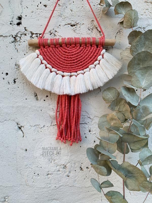 Мини декоративная макрамешка, будет непременно изюминкой современного интерьера. В наличии в трёх цветах: синий, коралловый, капучино. Сплетено из шнура 100% хлопок на природной ветке. Размер 20см × 26см