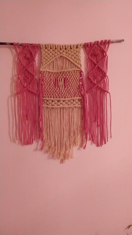 Панно "Дом" выполнен в технике макраме из хлопкового шнура и древесины.
