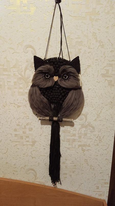 Сова из макраме – отличный подарок для Ваших близких и украшение для любого интерьера! Ручная работа, натуральные материалы (шерсть и дерево). Цвет – темнокоричневый. Размер совы: от ушей до кончика хвоста - 64 см. Изготовлено с вдохновением и любовью 😉