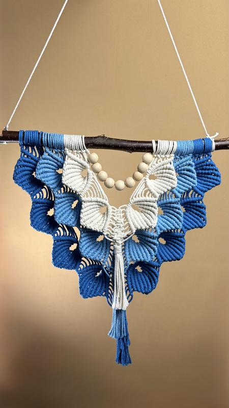 Макраме панно «Мушлі», виконане з бавовняних мотузок, стане чудовим акцентом у вашому інтерʼєрі. Розмір палиці 57 см, розмір самого панно 50*40 см