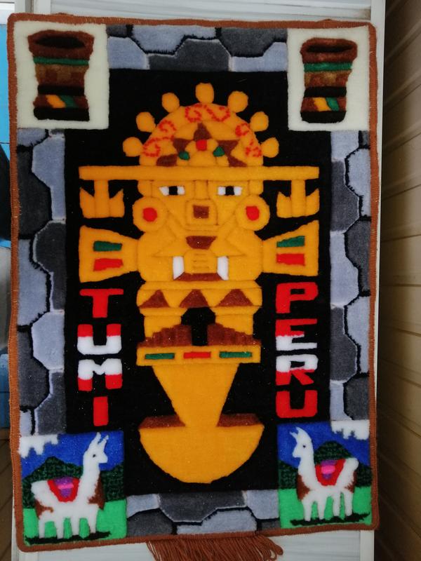 Из натуральной нити+мех ламы. Рисунок Туми, национальный символ Перу, размер 42×60см Смотрите другие Мои объявления, мое подарки🌷